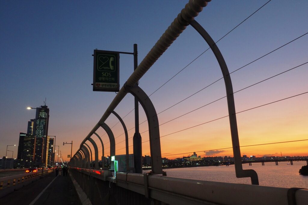 생명의 전화, 노을, 마포대교.